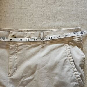 Banana Republic Roll Up City Chino Stone Twill Pants Size 10. They reach to mid ankle, but can be rolled up or down to slightly adjust the length. Features front and back pockets and a tortoiseshell front button.