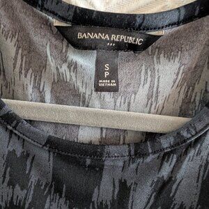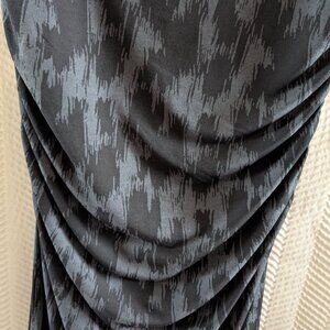 Banana Republic Ruched Midi Dress Black Gray Abstract Print Stretch Size Small