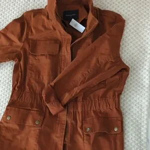 Chic utility jacket with front pockets. Zip closure and button details. Ideal for layering.