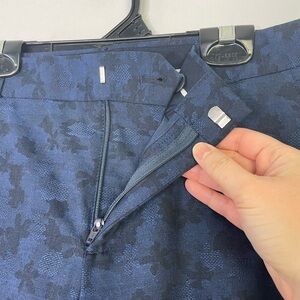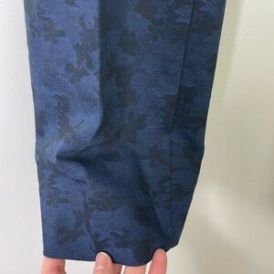 In good condition. 51% cotton 47% wool 2% spandex completely lined. Camouflage abstract print. Front pockets. Measure lay flat: waist 16'' hips 19'' rise 9,5'' inseam 29,5'' bottom wide 7''. Fit bigger on the waist please check measurements.