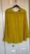 Banana Republic Semi-Sheer Swiss Dot Blouse in Golden Yellow. Long Sleeves end with Flounce Cuff. Round Neck with Soft Pleats. Back Opening and Covered Button. Inside tabs to keep camisole straps in place.