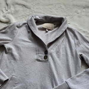 Upgrade your casual wardrobe with this Banana Republic shawl-collar pullover, size Small, in great condition. Crafted from a soft 57% cotton blend, this top features a three-button neckline, kangaroo pocket, and a relaxed fit that’s perfect for fall layering, weekend wear, or elevated basics styling.