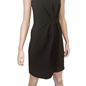 Banana Republic Sheath Dress Draped Pleated Detail MIcro Polka Dot Stretch