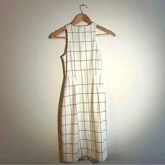 Banana Republic Sheath Dress with Slit in Black and White Windowpane Pattern