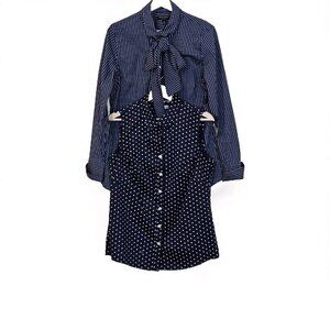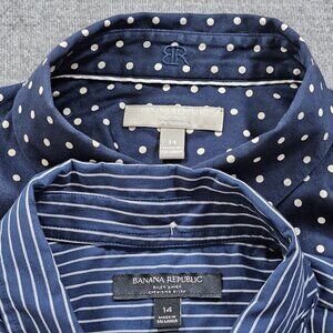 Banana Republic Shirt 14 Womens Lot of 2 Navy White Button Up Mature Office Boho