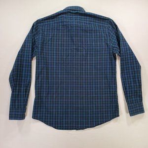Banana Republic Shirt Men Medium Navy Plaid Slim Flex Fit Stretch Button Down