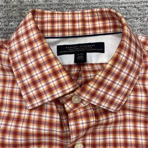 Banana Republic Shirt Men Medium Orange Checkered Button Up Non-Iron Classic Fit