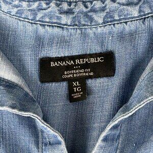 Banana Republic Shirt Womens XL Chambray Boyfriend Fit Button Back Pullover Blue