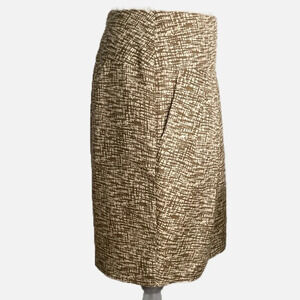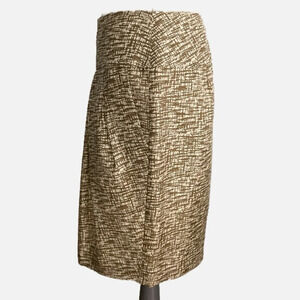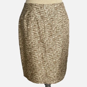 Banana Republic Silk Midi Pencil Skirt Gold Ivory Geometric Print Pleated Size 4