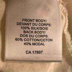 Material: Front: 100% silk | Back: 60% cotton, 40% modal