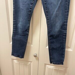 A classic pair of mid-rise skinny ankle jeans in a medium blue wash, perfect for everyday wear. Flattering petite cut designed to hit at the ankle with a slim fit through the leg. Great stretch for comfort and movement.