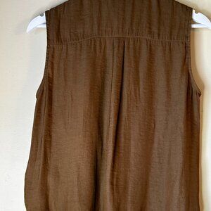 Luxurious Caramel brown Banana Republic sleeveless blouse. This like New condition sleeveless has a subdued elegance. With its soft shinny fabric if feels so luscious on the skin, like silk! A size small. This piece is a great pairing to your office jacket. Or under a jean jacket, you can dress this piece up or down.