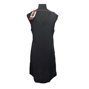 Keywords: Black sleeveless dress, Banana Republic dress, Cutout back detail, Slip-on style dress, Dress with pockets, Casual black dress, Elegant sleeveless dress, Little black dress