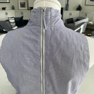 Banana Republic Sleeveless Lined Striped Cotton Midi Dress w Stand Up Tie Collar & Side Pockets