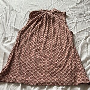 Elevate your work-to-weekend wardrobe with this Banana Republic sleeveless blouse featuring a chic tie-neck detail and an all-over geometric print. Lightweight and flowy, this top is perfect for layering under a blazer or styling solo with jeans or trousers.