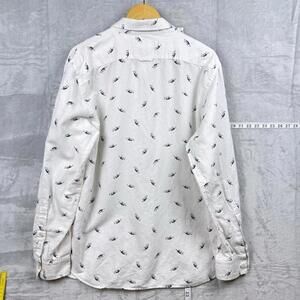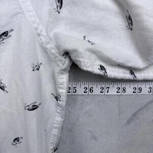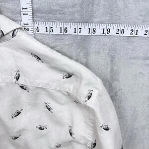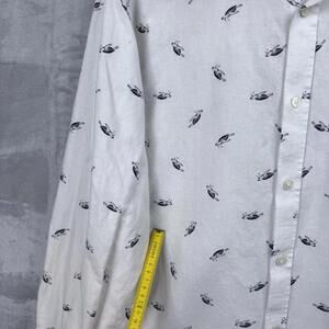 Banana Republic Slim Fit Linen Cotton Shirt Sz XL White Turtle Print Long Sleeve