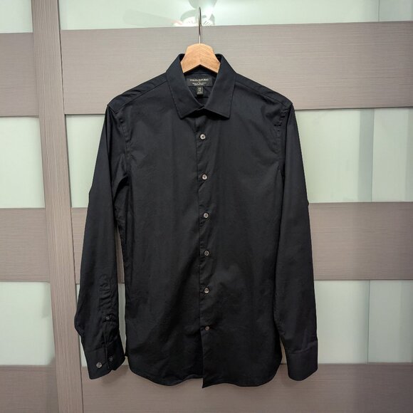 Banana Republic Slim-Fit Wrinkle-Resistant Dress Shirt — XS, Black, Athletic Fit