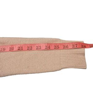 Beautiful ballet pink pullover sweater. Metallic threads throughout give it a bit of a sparkle. Perfect for holiday parties. Cable detail along neckline. Merino/Viscose/Nylon/Cashmere blend. See photos for approximate measurements. Some very light signs of wear.