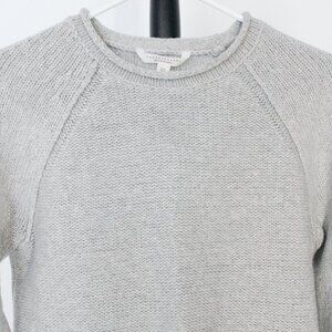 Wool Blend Grey Raglan Sleeve, Rolled Crew Neckline, Angles Side Slit Hemline Knit Crewneck Sweater Sz XS - Banana Republic Sunday Sunday