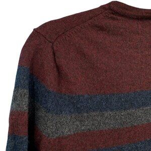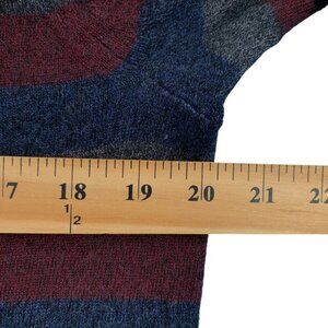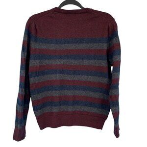 Banana Republic Sweater Womens Large Burgundy Red Blue Grey Striped Merino Wool