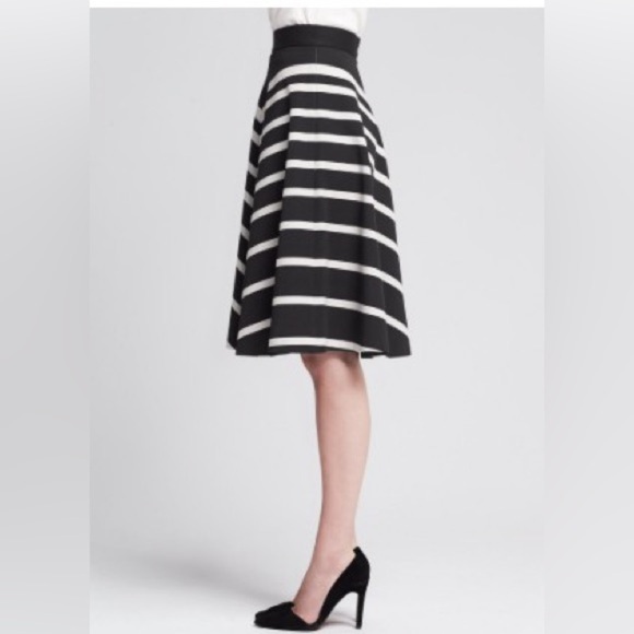Banana Republic Tall Chevron Black White A-Line Day 2 Nite Trendy Midi Skirt 8