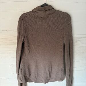 Chic and timeless, this Banana Republic taupe cardigan adds effortless polish to any outfit. Featuring a textured open-knit design, a subtle curved hem, and a snap-button front closure, it’s the perfect layering piece for any season. The soft, midweight fabric provides cozy comfort while maintaining a sleek silhouette.