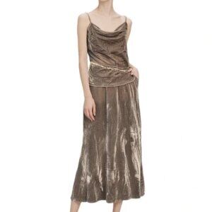 Banana Republic Taupe Velvet Midi Slip Skirt Gray Brown Flared Party Size Small