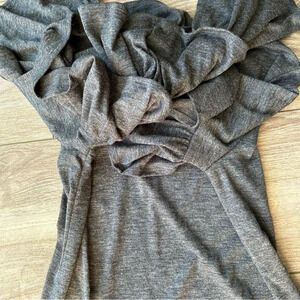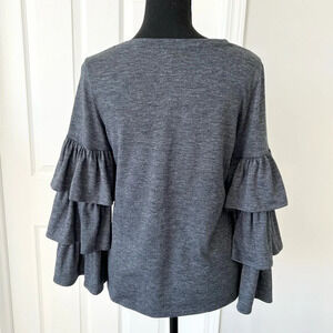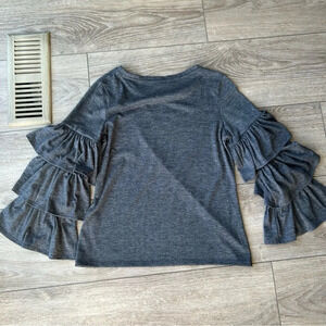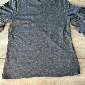 Excellent preowned condition Stretchy soft material Tiered ruffles sleeves Grey colour Size: S Approximately measurements Armpit to armpit: 19.5” Length: 22” O3842 New to Poshmark? Save $15 On Your Purchase With Code “JOY_WU”