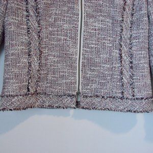 Banana Republic Tweed Linen Blend Jacket Blazer Fringe Collarless Size 4