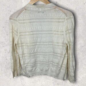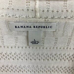 Banana Republic White Eyelet Knit Cardigan Sweater Size Large Open Front Minimal