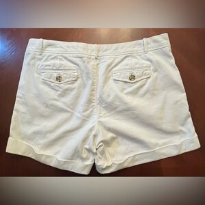 Banana Republic Women’s White City Chino Shorts. Pretty tortoise shell buttons on the front and back pockets. Cuffed leg and side slit front pockets.