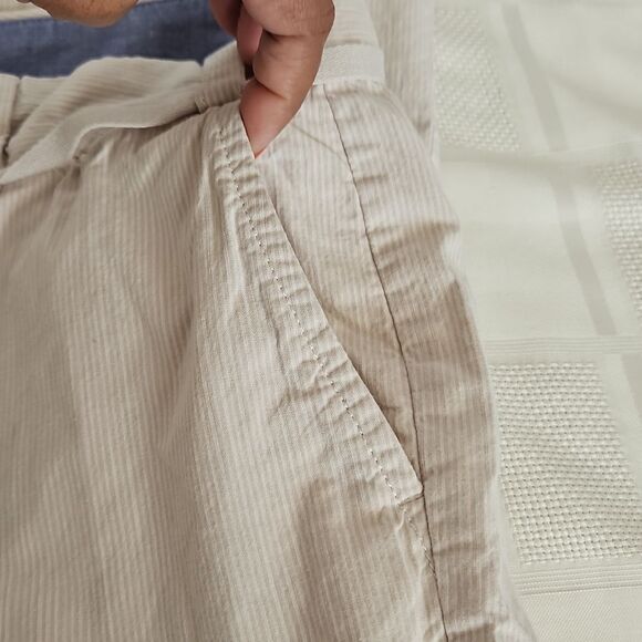 Banana Republic Women's Cotton Pinstripes Wide Leg Cropped Capri Pants Cream 0