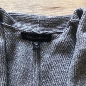 Chic Banana Republic cardigan with a stylish draped front. Soft gray fabric. Perfect for layering.