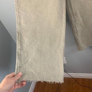 Banana Republic Womens High Rise Wide Leg Crop Brown Tan Fray Hem Cotton 31 L