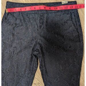 Crafted with precision, these Banana Republic women's lace pants are a sophisticated addition to your wardrobe. Tailored for a slim fit, they come in a stunning blue hue that complements any top for formal occasions, cocktail parties, or weddings. The floral pattern adds a touch of elegance, while the lace fabric ensures a chic, modern look. Each pair features a comfortable 29-inch waist and a tapered leg style that flatters your silhouette. The pants are designed with both a button and zipper closure for a seamless fit. With a 22-inch inseam, these ankle cropped pants are an ideal choice for those seeking both style and functionality in their attire.