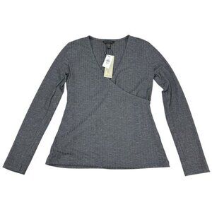 Banana Republic Women's Long Sleeve Rib Wrap Tee In Gray Size XXS Petite