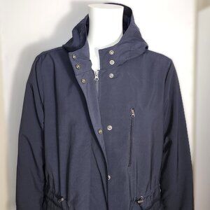 Banana Republic Women's Navy Long Hooded Drawcord Spring/Rain Coat - XL