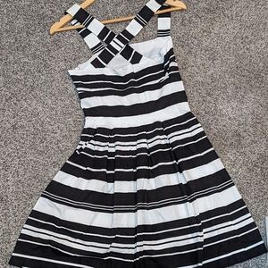 Banana Republic Womens Pleated Dress Knee Length Square Neck Black White