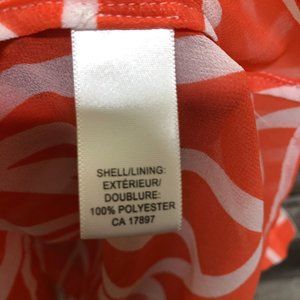Banana Republic Women's Semi Sheer Blouse Orange White Print Size L