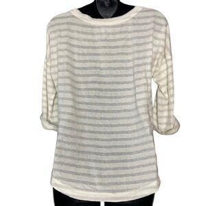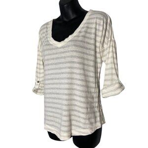 Banana Republic Womens ¾ Sleeve Casual Stripe V-Neck Top Sleeve