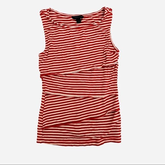 Banana Republic Women's Sleeveless Tank Top Size Extra Small Red White Striped with Layered Front