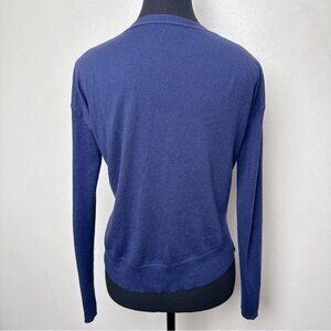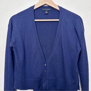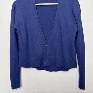 Banana Republic Womens Small Silk Cropped Vneck Button Navy Cardigan