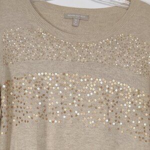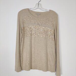 Banana Republic Women's Sweater Size M Beige Sequins Cotton Viscose Lightweight