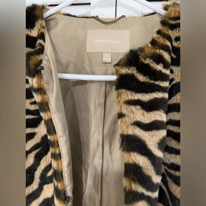 Banana Republic Women's Jacket Size XS Faux Fur Coat Collarless Animal Print
