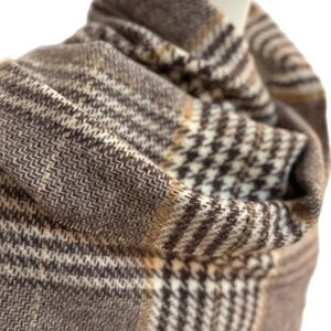 This Banana Republic wrap features a timeless plaid pattern in soft neutral shades of taupe, ivory, and charcoal, finished with subtle fringe edges. The generous size allows it to be worn as a cozy wrap or classic scarf, adding a refined layer of warmth to any outfit. The woven wool texture feels thick, luxurious, and beautifully tailored — a hallmark of Banana Republic’s commitment to elevated, modern essentials.