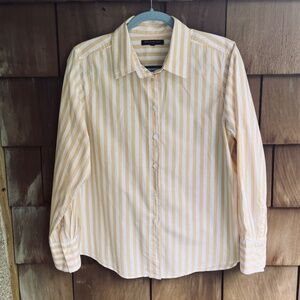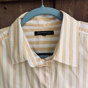 Banana Republic Yellow White Striped Button Up Collared Long Sleeve Shirt Size L