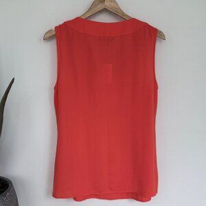 Round, oval, and square white beads and sequins are sewn around a not-too-deep vee neckline. The pleats framing the vee visually ground and balance out the look. The fabric has a crepe texture to it, and there is a seam running down the centre of the back. It's hard to find construction like this these days. Absolutely beautiful top!