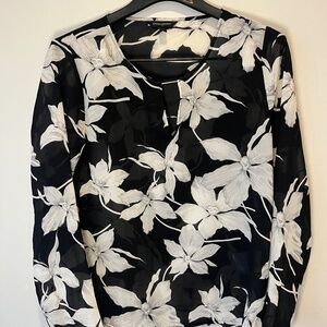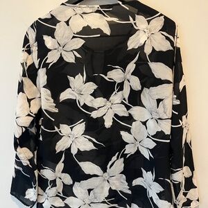Banana Republic black and white floral patterned sheer long sleeved blouse size small.