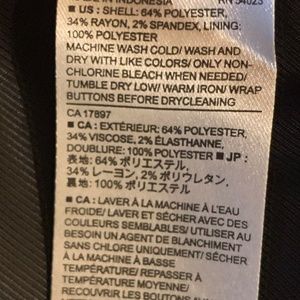 FABRIC CONTENT : 64% Polyesters, 34% Rayon, 2% SPANDEX - LINING : 100% POLYESTER