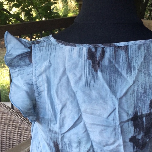 Banana Republic 100% silk blouse in excellent preloved condition. Tie hem, ruffled cap sleeves, beautiful shades of blue.